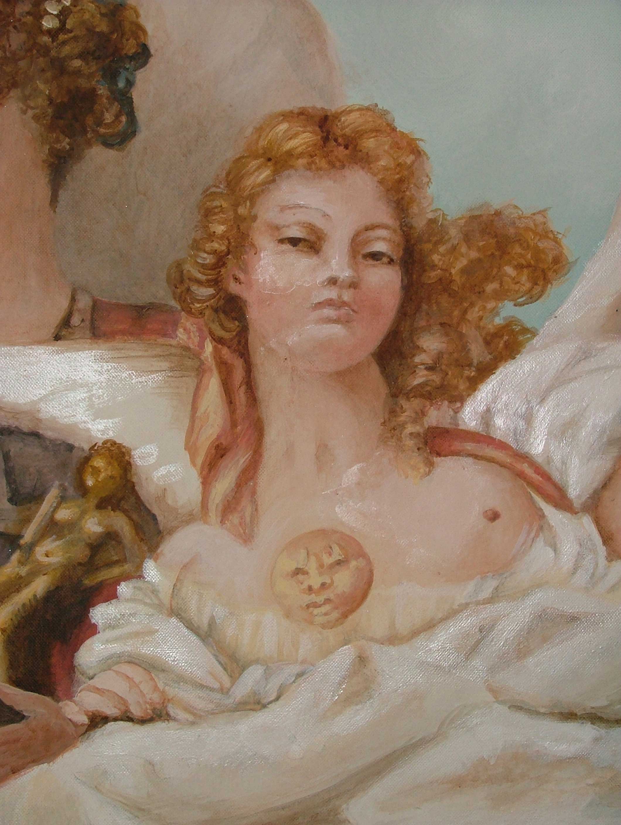 Ispirazione dal Tiepolo “Il trionfo della Fortezza e della Sapienza”Acrilico su tela300 x 200 cmSoffitto di abitazione privata, Roma